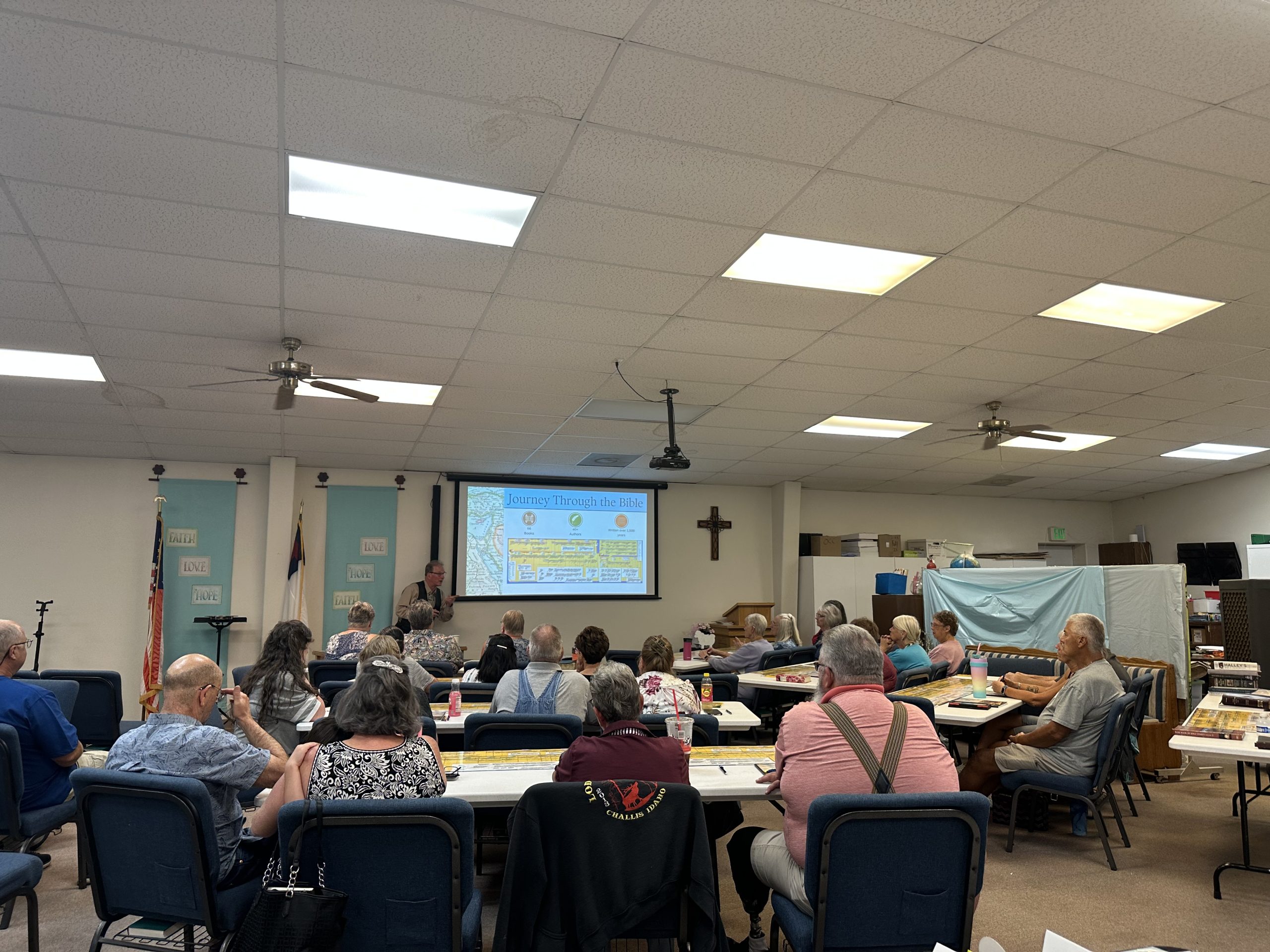 We spread the “Journey through the Bible” out over four sessions all weekend. And as you know, people talk … and more came to each session. By the final lesson, the place was packed and we set up even more chairs & tables in the foyer. That was a first!